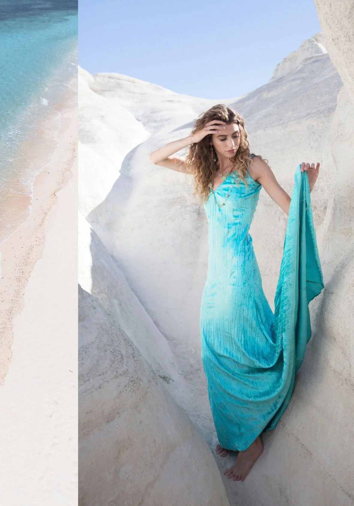 Soft, translucent blue-green with a milky glow. Evokes calm, shallow tropical waters — the serenity note in the collection.