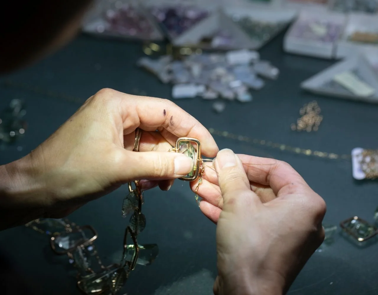 As a one-of-a-kind jewelry designer, I don't replicate pieces or work from templates. Each design responds to the specific gemstones I've sourced, the creative challenges that emerge, and the evolution that happens in my studio.