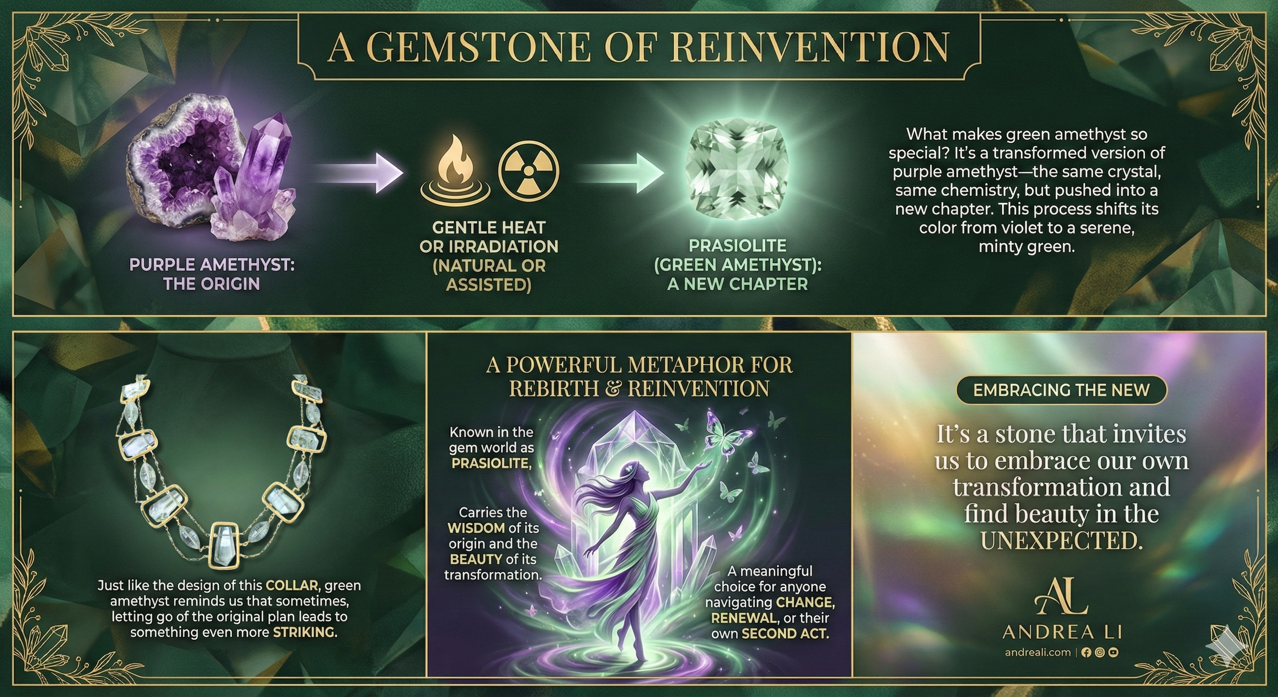 I'm Andrea Li, a handmade gemstone jewelry designer creating one-of-a-kind pieces from my studio in Denver, Colorado. Each piece I make takes me on what I call a "micro-journey", a unique creative path that can never be exactly replicated. This is the story of how the Green Amethyst Square Gemstone Collar Necklace from my Tamar Collection came to life.