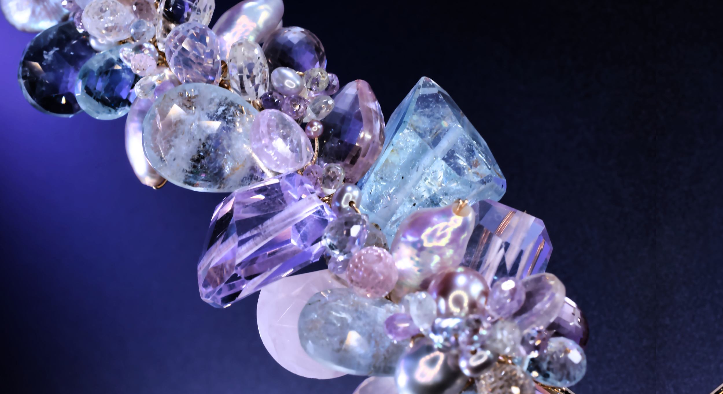 So I answered with a flourish of my signature gemstone clustering, a chorus of color and texture featuring rose quartz, pink tourmaline, and additional kunzite accents. This created visual rhythm and brought the necklace into full, expressive resolution.