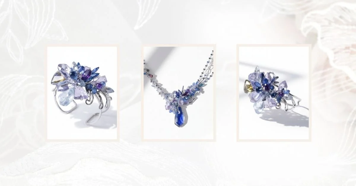 Victoria's professional photos from her own wedding had just come back, stunning shots that showed off the necklace and bracelet beautifully. But in the same message, she was already looking forward. A family member's wedding was coming up in August, and she wanted something new. Something more subtle, still in the blues and purples of her engagement ring, but scaled for a guest rather than a bride.